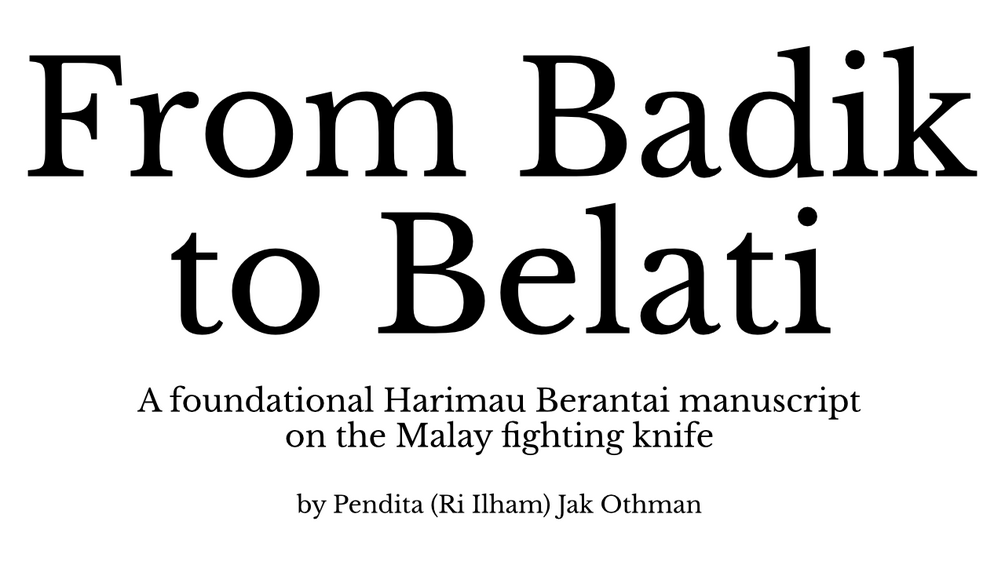 From Badik to Belati is an archival English translation of a Malay-language manuscript written in 2013 by Pendita (Ri Ilham) Jak Othman, one of the key voices within the Harimau Berantai lineage.